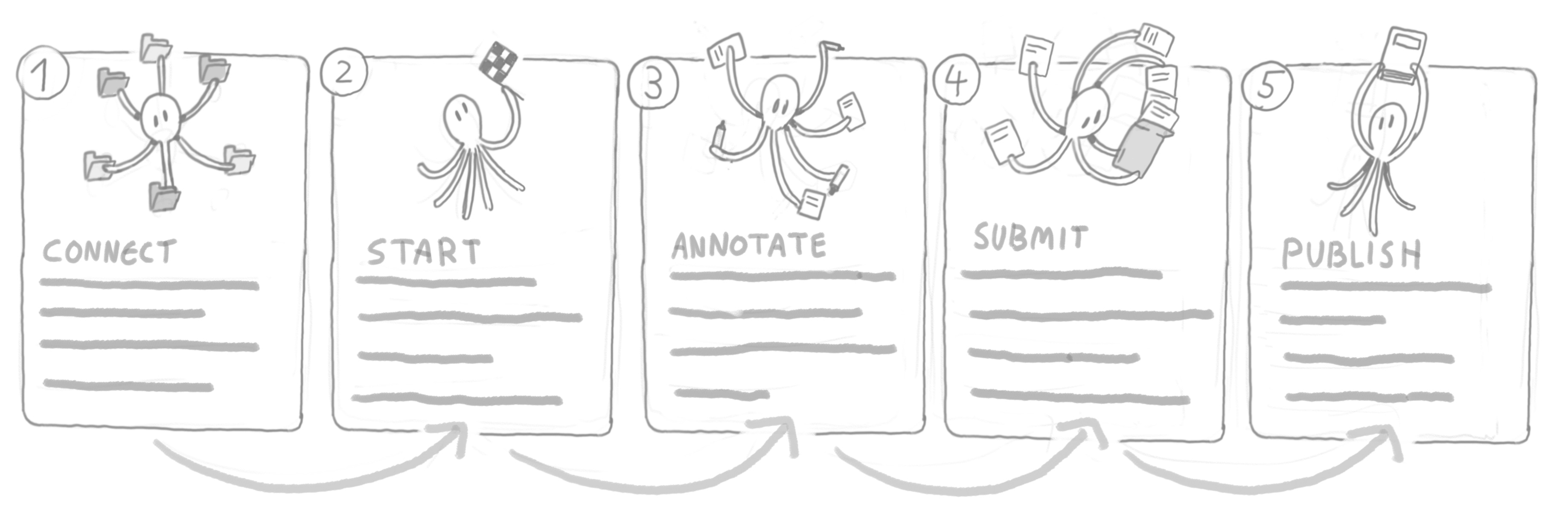 - connect directly with external research data services such as Zenodo or OSF to upload your data directly into the repositories