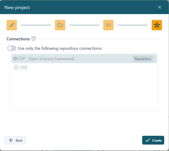 The last step gives you the option to limit your project to only certain connections you have set up before. Tip: this can be especially useful if you work with several repositories or accounts but don’t need all of them for every project.