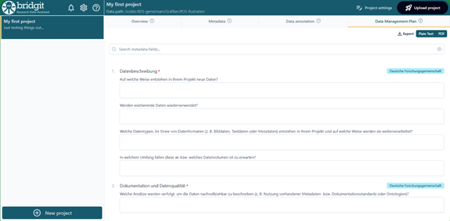 The data management plan allows you to assess a Data Management Plan using a simplified interface: